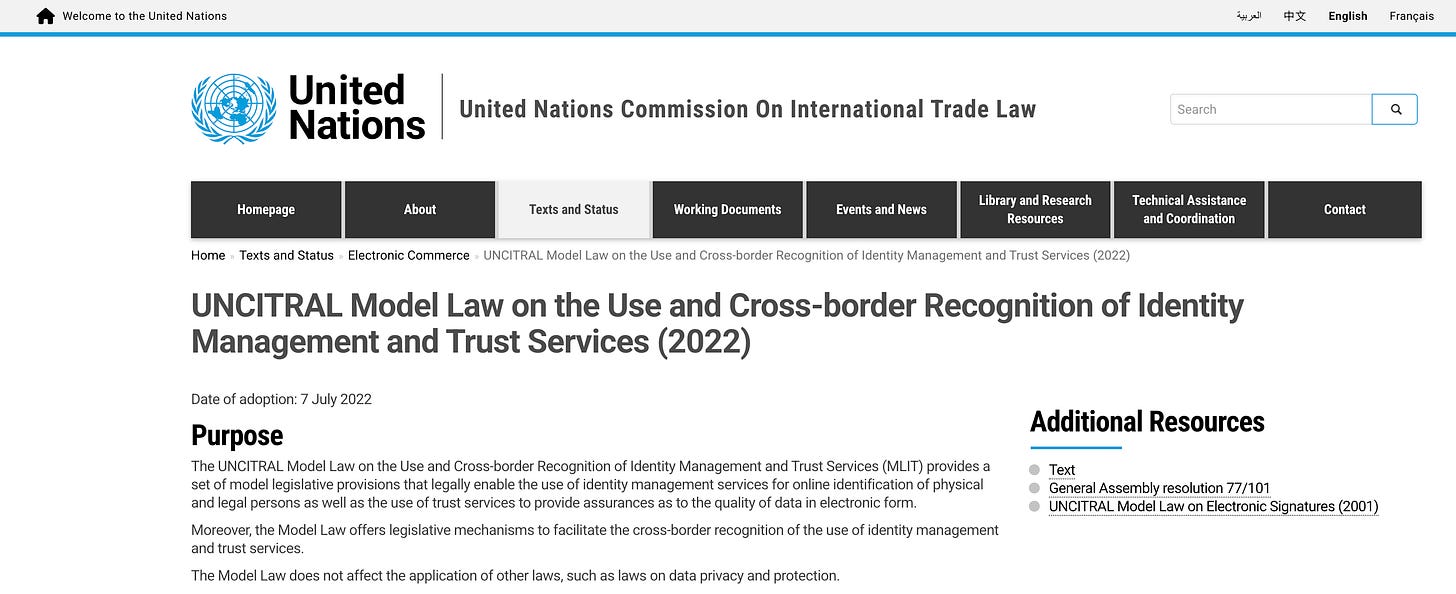 Inzwischen erarbeitet die UNCITRAL-Arbeitsgruppe IV ein Mustergesetz über Identitätsmanagement und Vertrauensdienste 54. Die Kontrolle über Vermögenswerte erfordert die Kenntnis darüber, wer die Kontrolle ausübt.