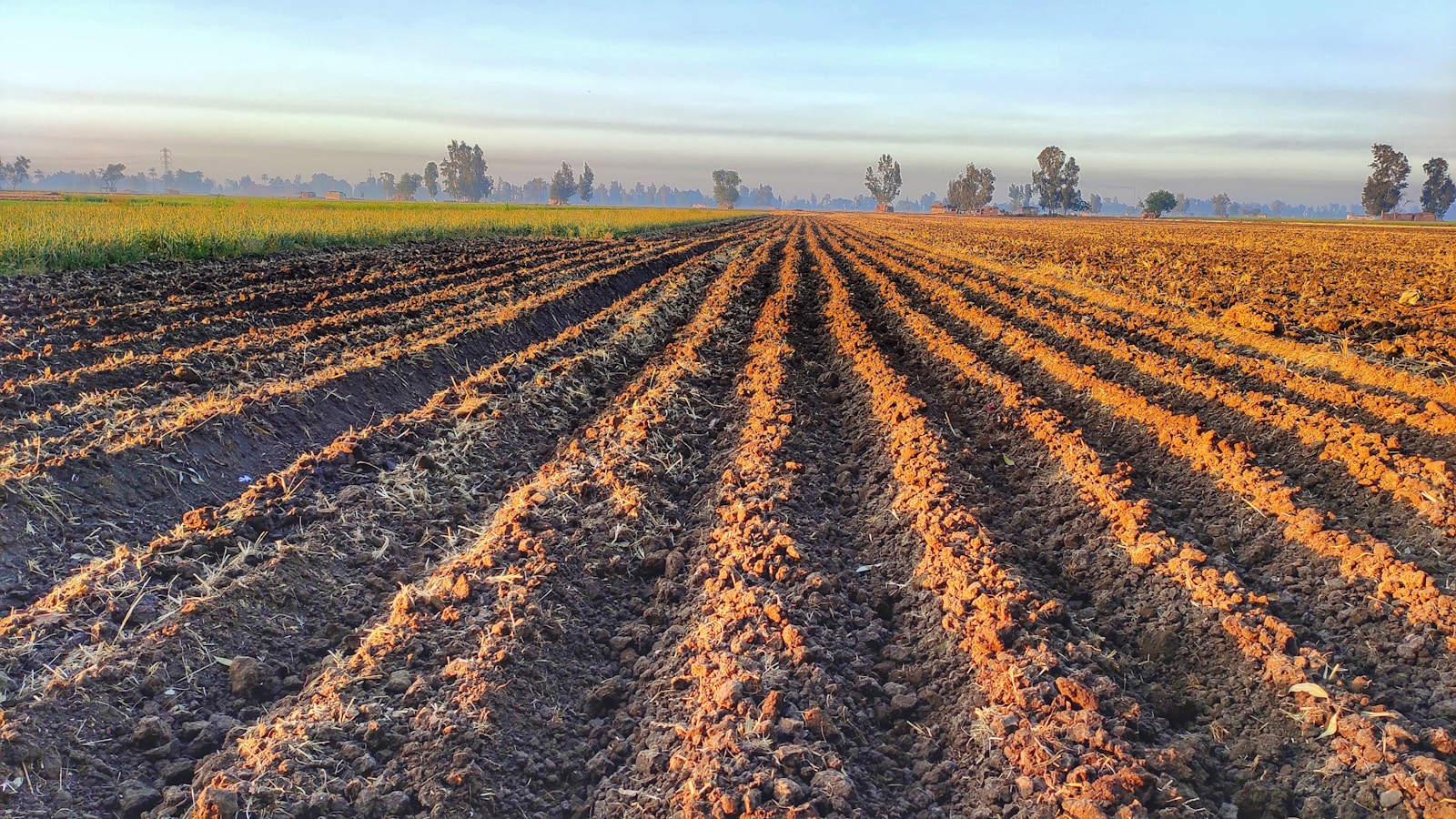 a plowed field in the middle of a rural area
